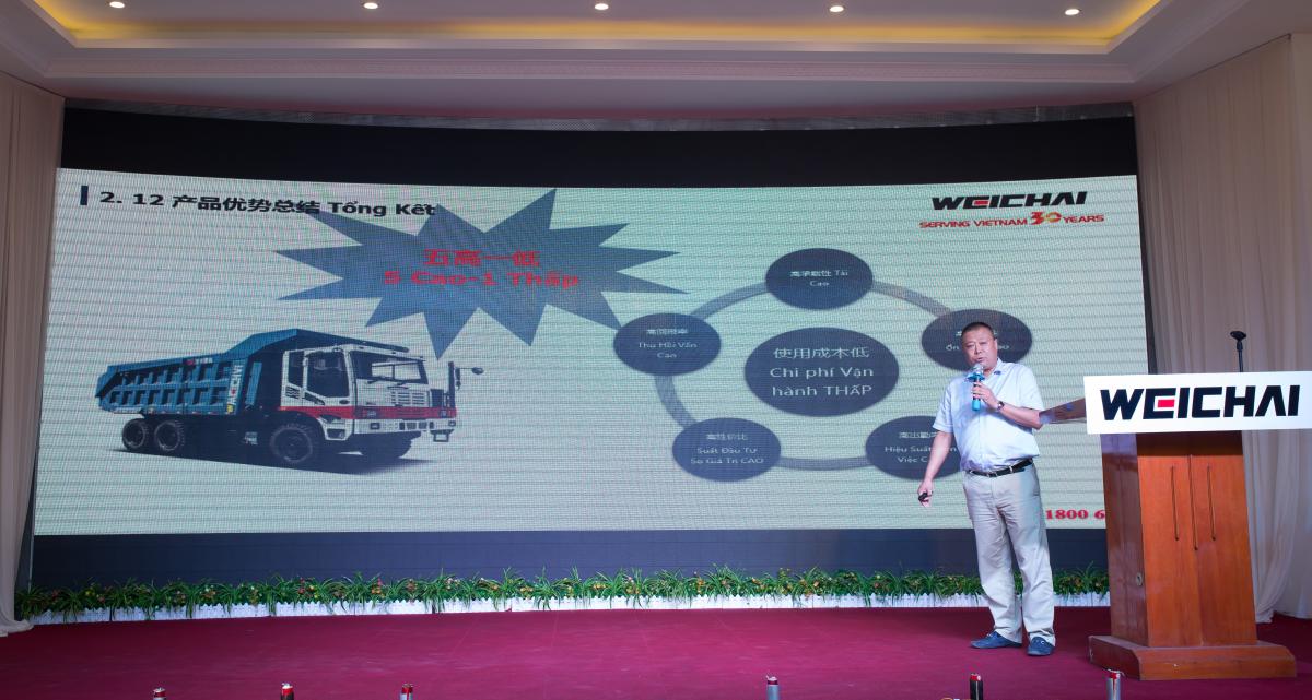 At the promotion meeting, Mr Wang Haiyang-Import and Export Mining truck manager briefly introduced the products to the Vietnamese market and the research and development capabilities of Weichai Group. With the service concept of "where there’s Weichai engine, there’s Weichai service", Mr Nguyen Thanh Trung, maintenance service specialist on behalf of Weichai Vietnam introduces customers to professional service of Weichai