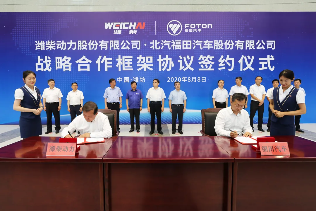 On August 8, 2020, Weichai Power and Foton Motor signed a strategic cooperation framework agreement at the Weichai Power headquarters in Weifang, Shandong. Weifang government leaders,  Mr. Tan Xuguang - Weichai Power's Chairman, Mr. Zhang Xiyong - Foton Motor's Chairman and other leadership representativies attended the signing ceremony.